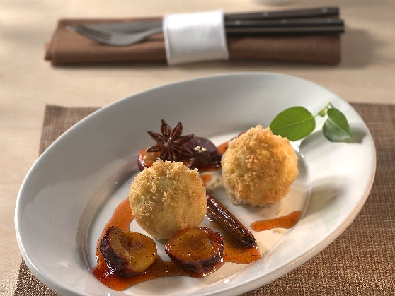 - In einem großen Topf mit viel Wasser, 1 TL Salz und der Zitronenscheibe zum Kochen bringen. Aus der Quarkmasse zehn kleine Bällchen formen und ins Wasser geben. Das Wasser kurz zum Kochen bringen, den Topf mit einem Deckel abdecken und sofort vom Herd nehmen. Die Klößchen etwa 15 Minuten ziehen lassen. Die restliche Butter in den Topf geben, die Semmelbrösel dazugeben und kurz mitbraten. Die Quarkklößchen durch die Semmelbrösel ziehen und auf Tellern verteilen. Mit dem Damastkompot servieren.
