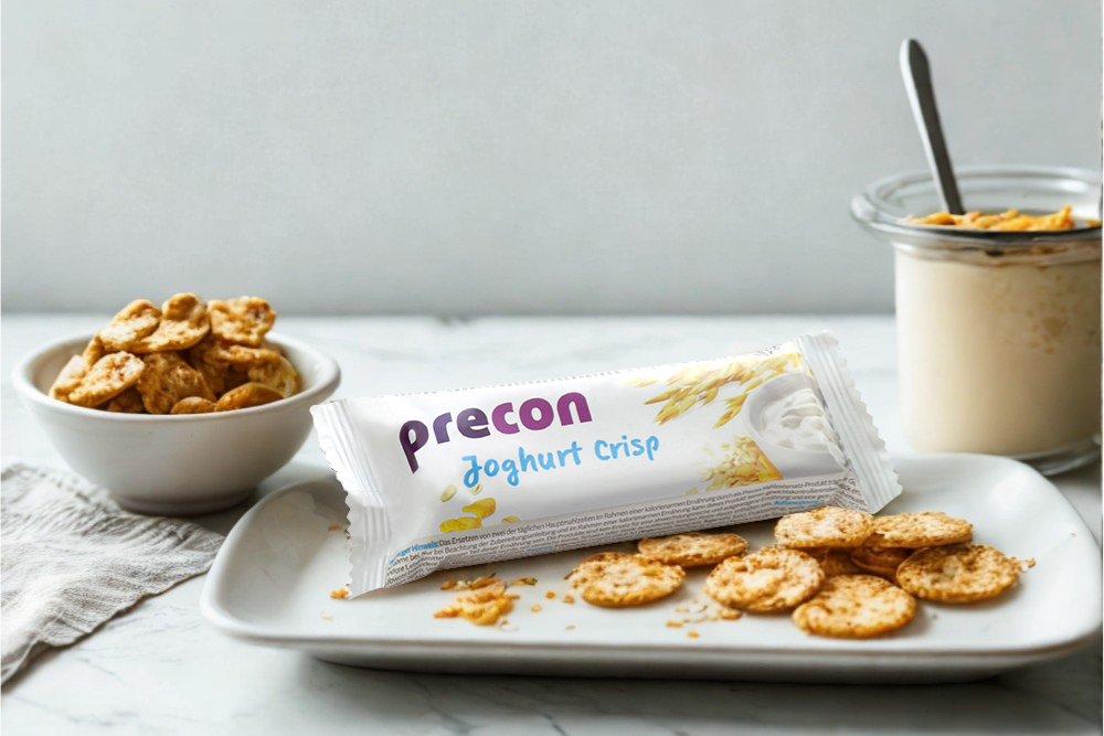 Unsere leckeren Precon Riegel ersetzen eine komplette Mahlzeit, versorgen Dich mit hochwertigen Proteinen, Ballaststoffen sowie 23 Vitaminen und Mineralstoffen – und das bei ca. 230 kcal pro Riegel.