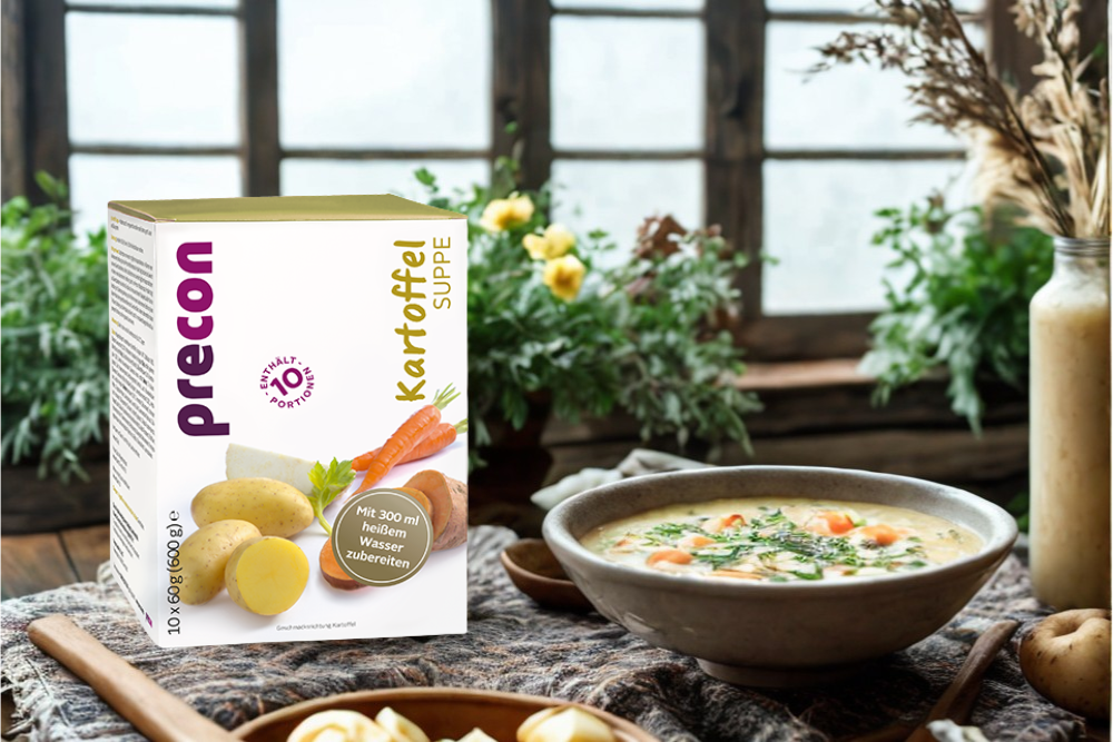 Unsere herzhaften Precon Suppen ersetzen eine komplette Mahlzeit und werden mit heißem Wasser zubereitet. Sie versorgen Dich mit hochwertigen Proteinen, Ballaststoffen sowie 23 Vitaminen und Mineralstoffen – und das bei jeweils unter 230 kcal pro Portion.